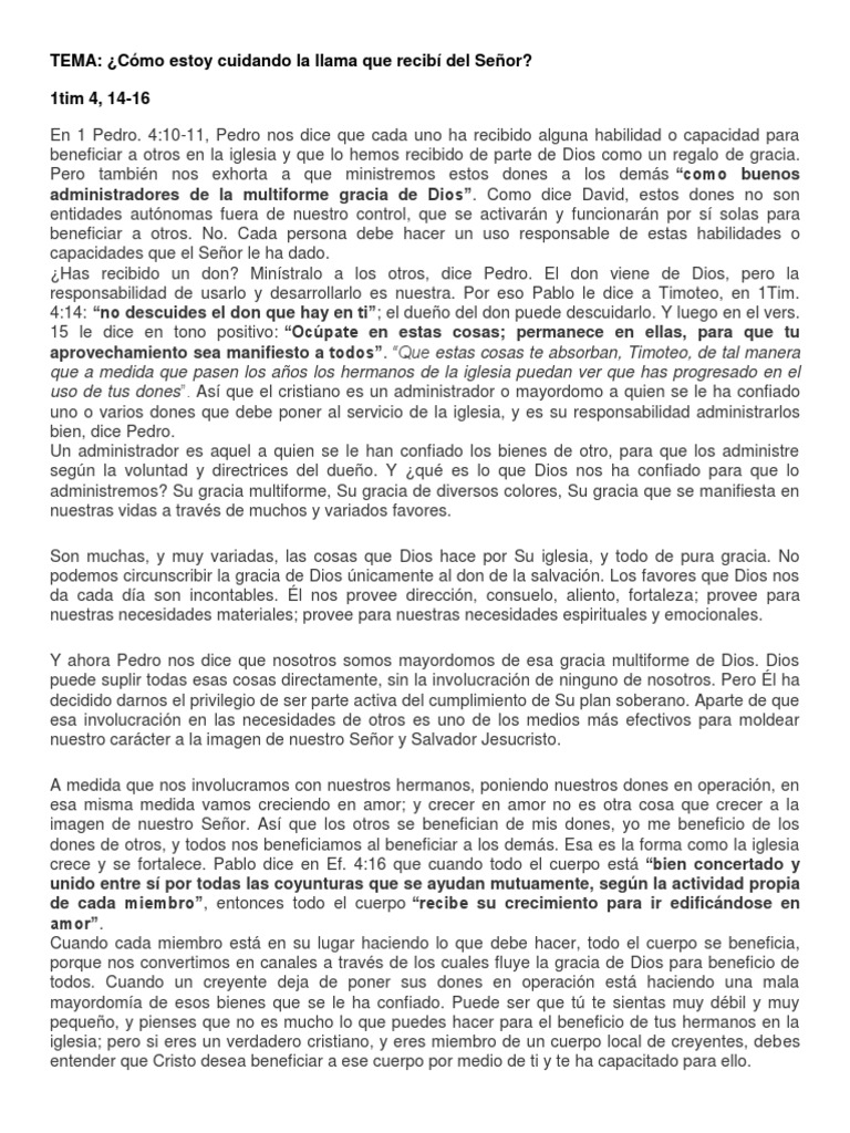 hombres. 1 Timoteo 4:14 No descuides el don que hay en ti, Que te fue dado mediante profecía con