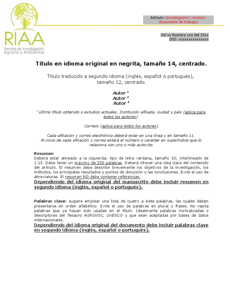 descriptores del Tesauro AGROVOC, UNESCO y que sean aceptadas por bases de datos
