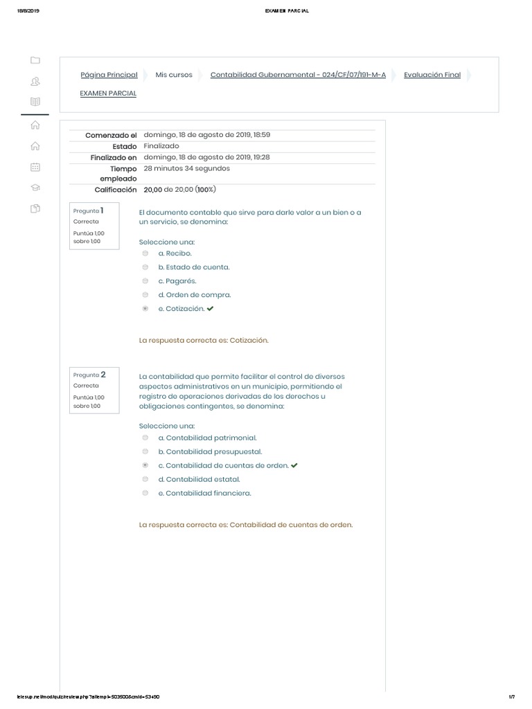 Página Principal Mis cursos Contabilidad Gubernamental - 024/CF/07/191-M-A Evaluación Final