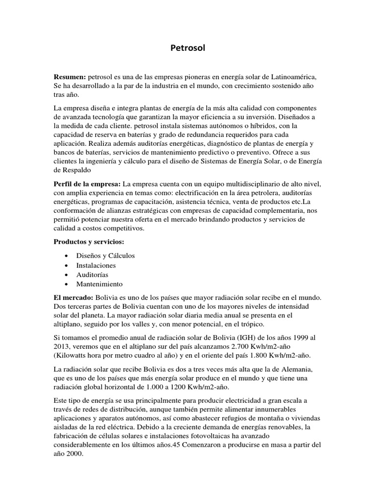 Resumen: petrosol es una de las empresas pioneras en energía solar de Latinoamérica,