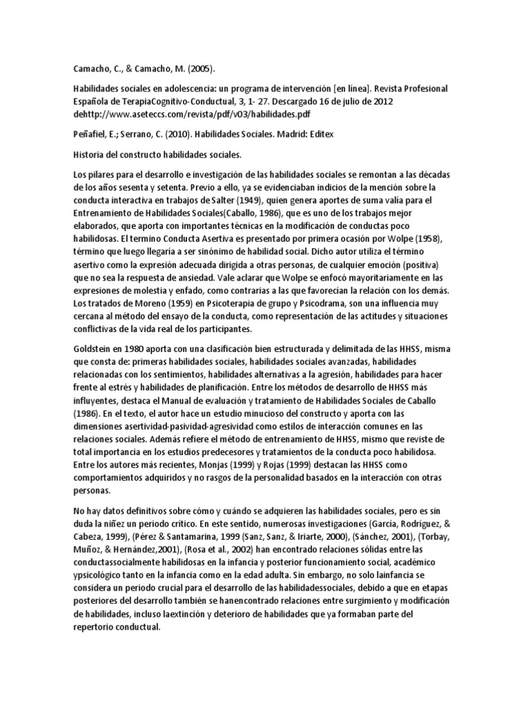 Entrenamiento de Habilidades Sociales(Caballo, 1986), que es uno de los trabajos mejor