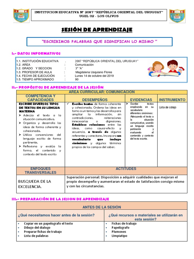 SESIÓN DE APRENDIZAJE