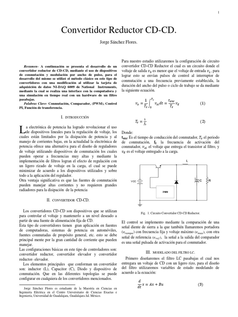 Resumen- A continuación se presenta el desarrollo de un convertidor CD-CD Reductor el cual es un circuito donde el