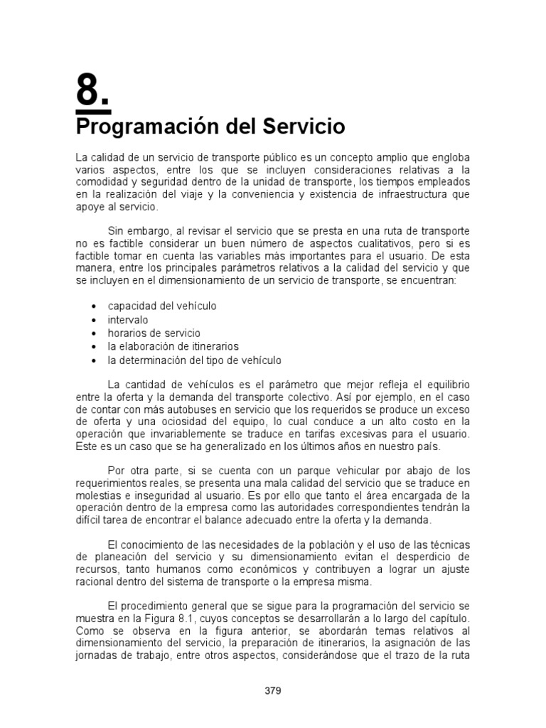 desarrollar las bases del dimensionamiento y programación del servicio más que a