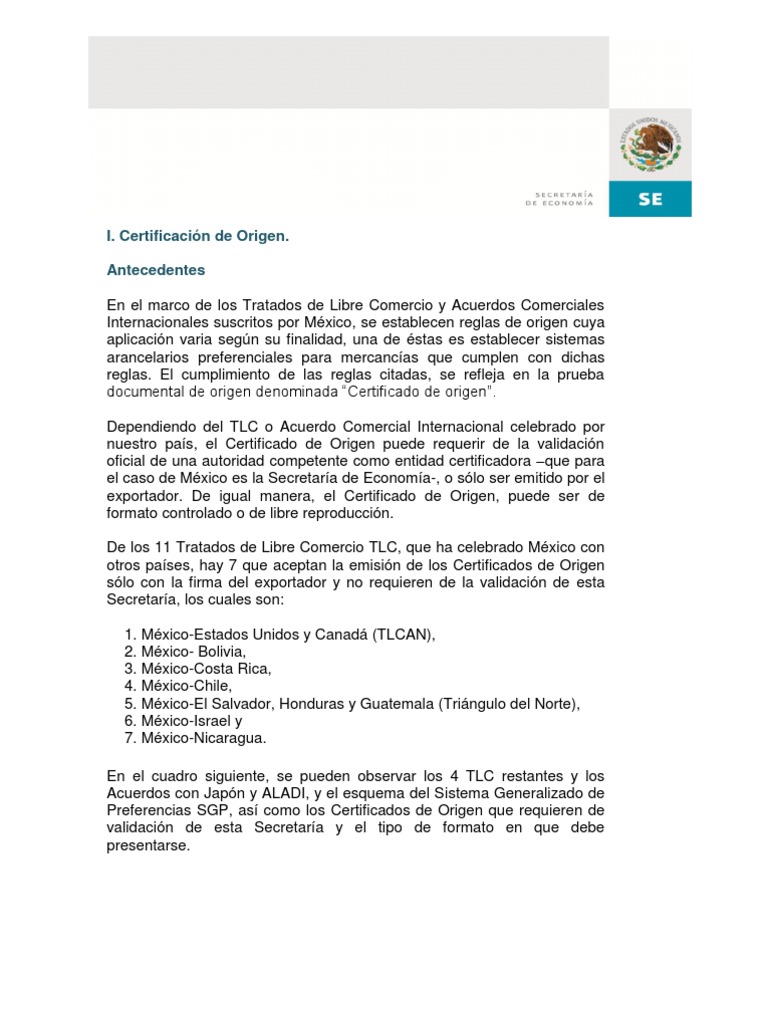 Certificados de Origen en la Secretaría de Economía.