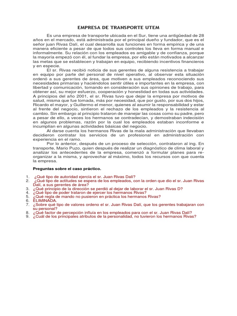 transporte, Mario Puzo, quien después de realizar un diagnóstico de clima laboral y