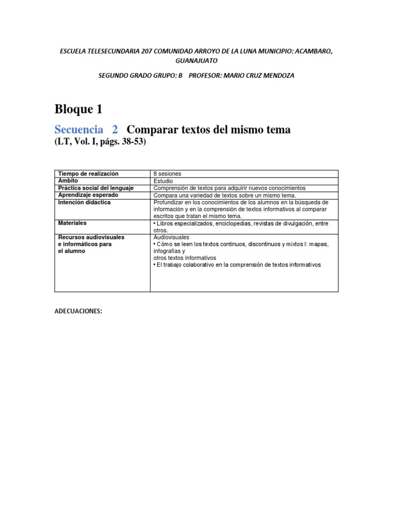 Secuencia 2 Comparar textos del mismo tema