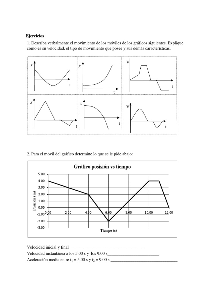 1. Describa verbalmente el movimiento de los móviles de los gráficos siguientes. Explique