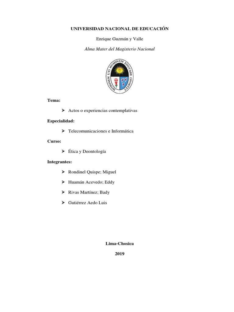 El presente informe costa de 10 páginas, nos referimos a los actos o experiencias