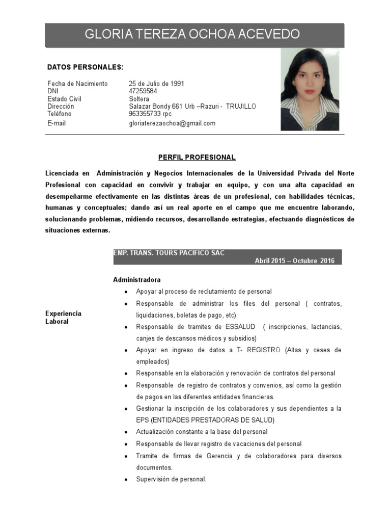 Experiencia liquidaciones, boletas de pago, etc)