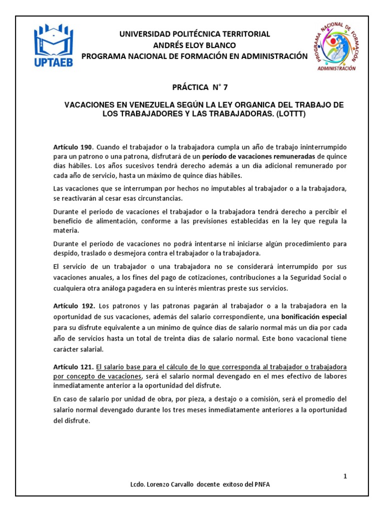 VACACIONES EN VENEZUELA SEGÚN LA LEY ORGANICA DEL TRABAJO DE