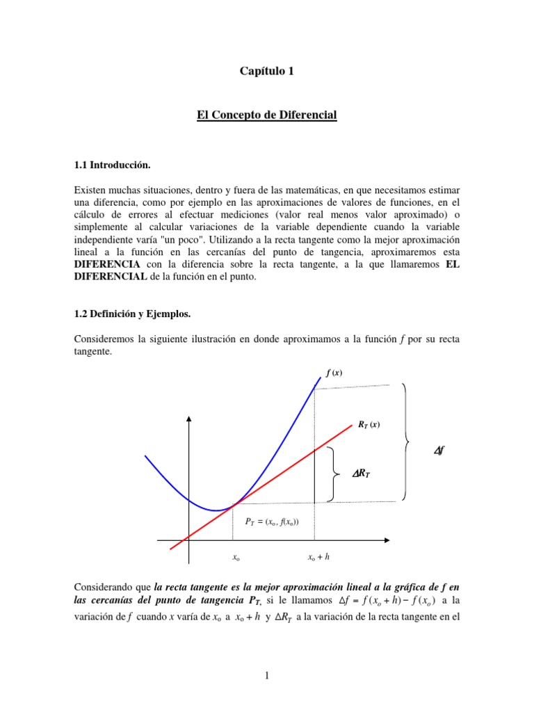 DIFERENCIAL DE f en el punto xo, con respecto al incremento h y lo denotaremos por
