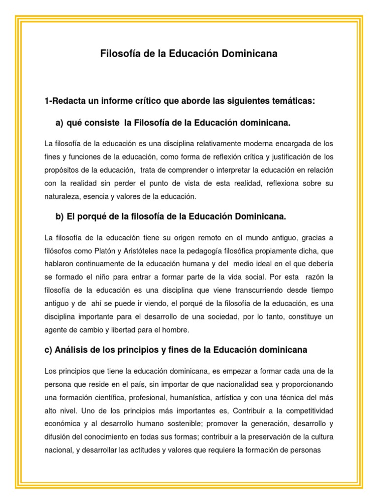 a) qué consiste la Filosofía de la Educación dominicana.