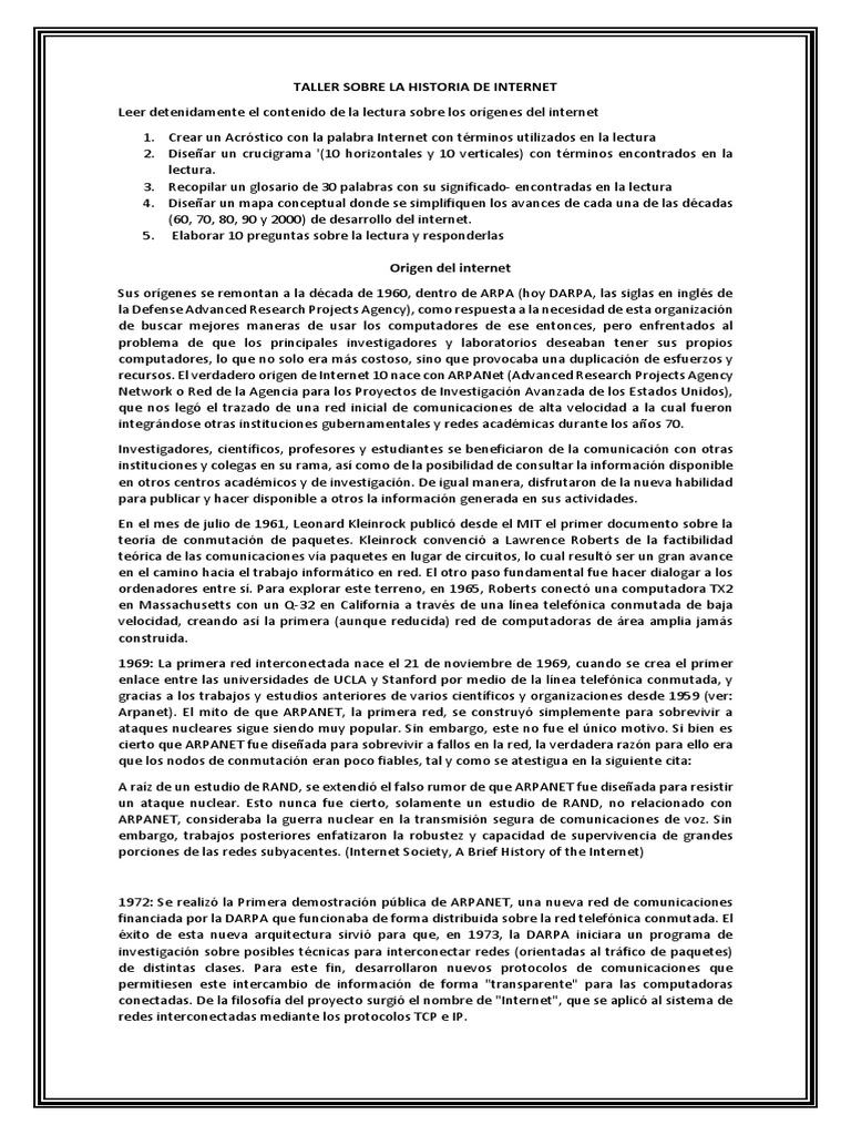 Leer detenidamente el contenido de la lectura sobre los orígenes del internet