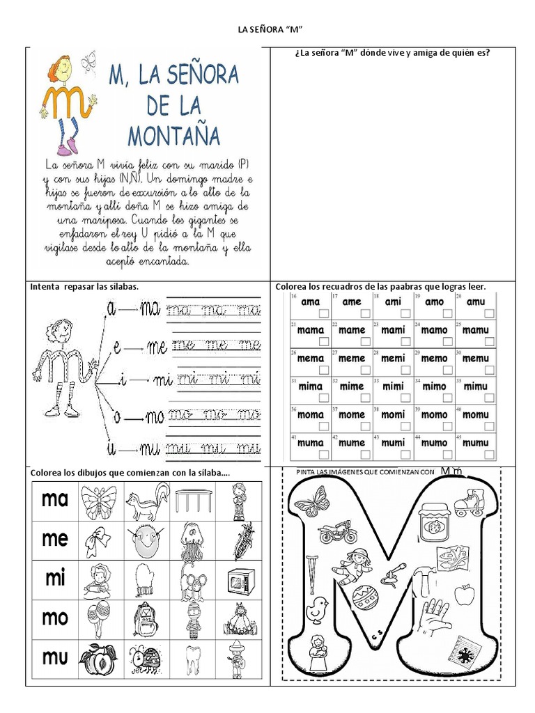 Trata de leer las siguientes palabras y formarlas con el silabario de la Sra. “M”