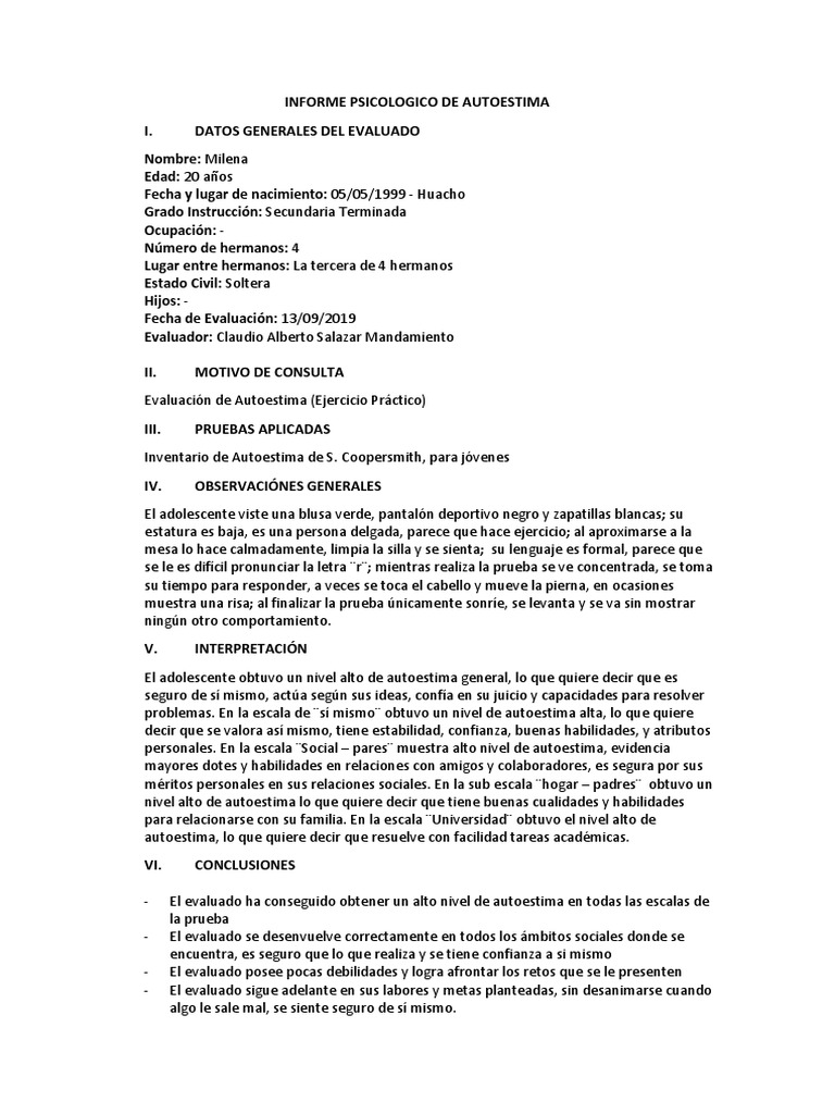 INFORME PSICOLOGICO DE AUTOESTIMA