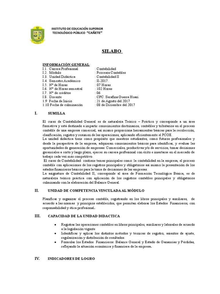 I.1. Carrera Profesional : Contabilidad