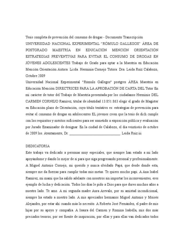 de Ciencias Jurídicas y Políticas, Escuela de Criminología. Plan Nacional sobre Drogas.