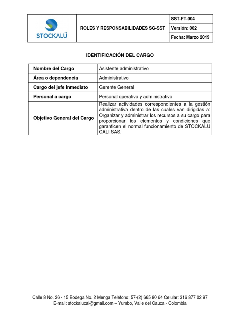 E-mail: stockalucal@gmail.com – Yumbo, Valle del Cauca - Colombia
