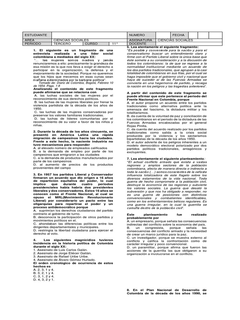 3. En 1957 los partidos Liberal y Conservador influencia totalizadora de este flagelo sobre los
