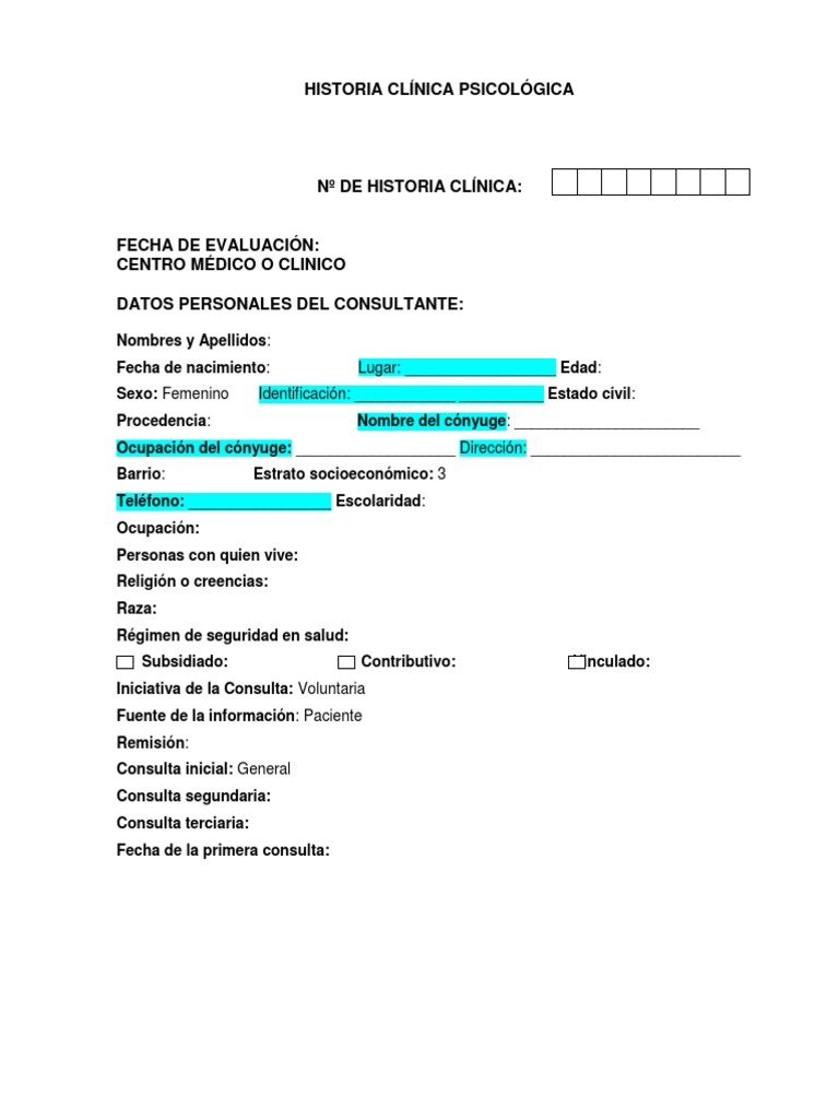 HISTORIA CLÍNICA PSICOLÓGICA