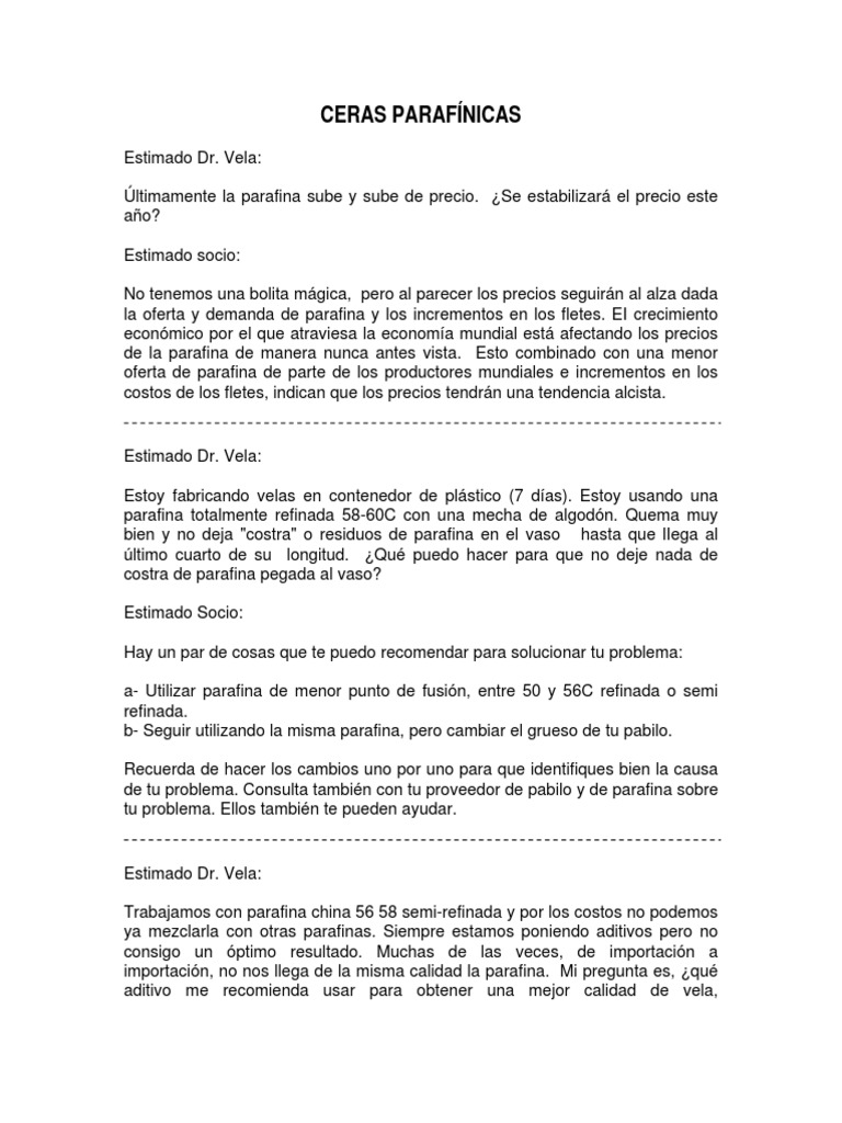 de tu problema. Consulta también con tu proveedor de pabilo y de parafina sobre