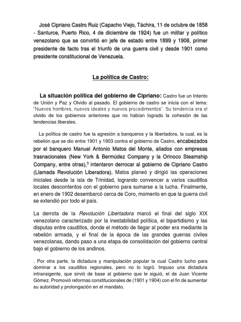 La situación política del gobierno de Cipriano: Castro fue un Intento