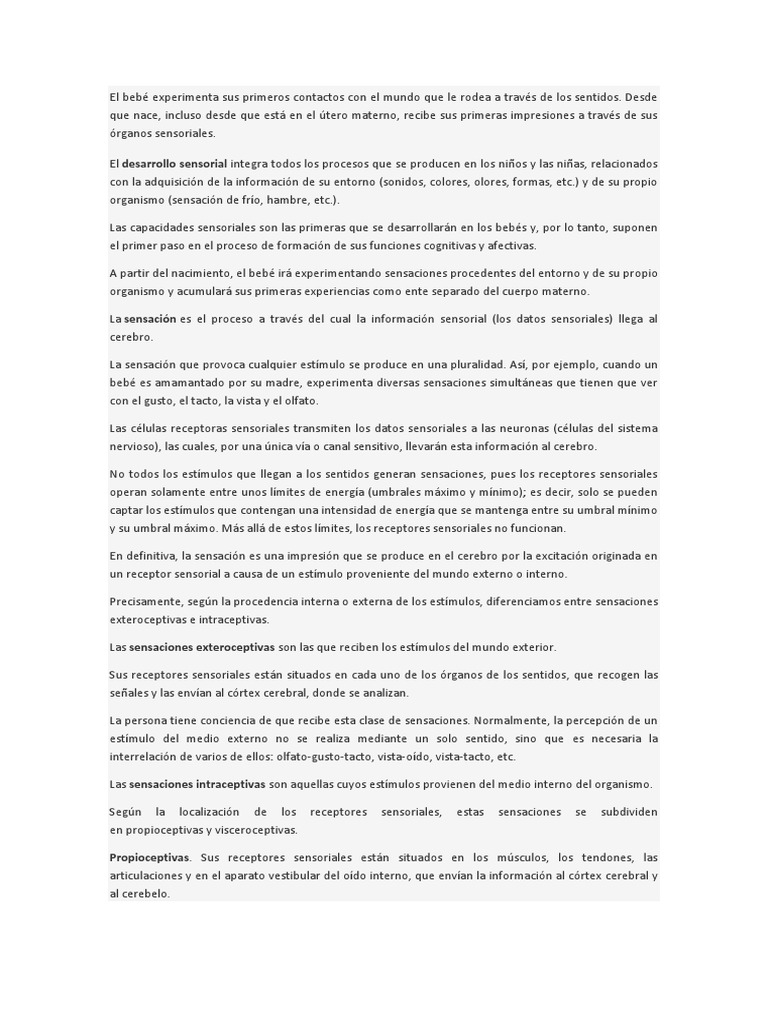El desarrollo sensorial integra todos los procesos que se producen en los niños y las niñas, relacionados