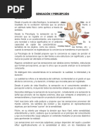 La sensación es el proceso a través del cual la información sensorial (los datos sensoriales) llega al
