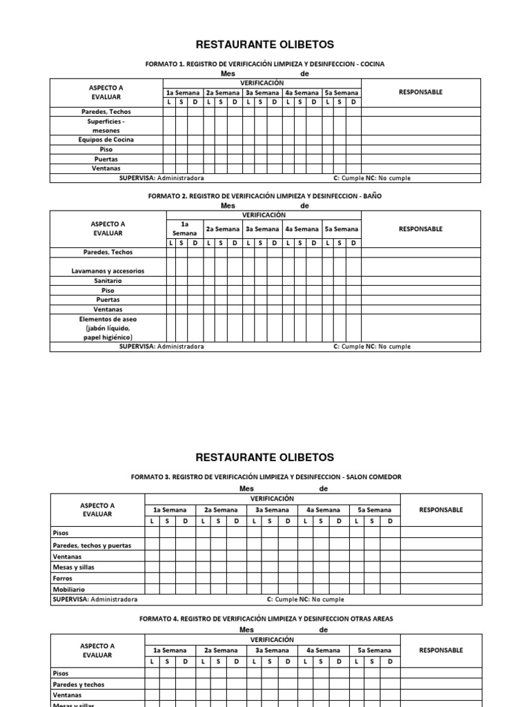 FORMATO 4. REGISTRO DE VERIFICACIÓN LIMPIEZA Y DESINFECCION OTRAS AREAS