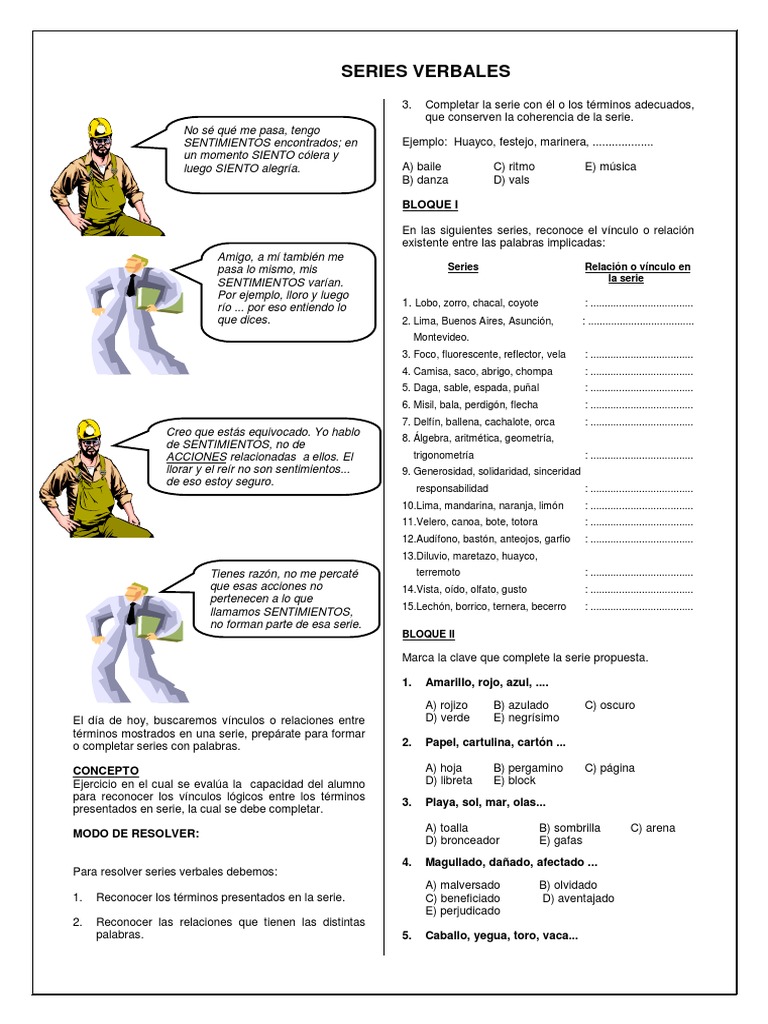 8. Chicha, limonada, té... II. Elabora una serie verbal donde figuren elementos