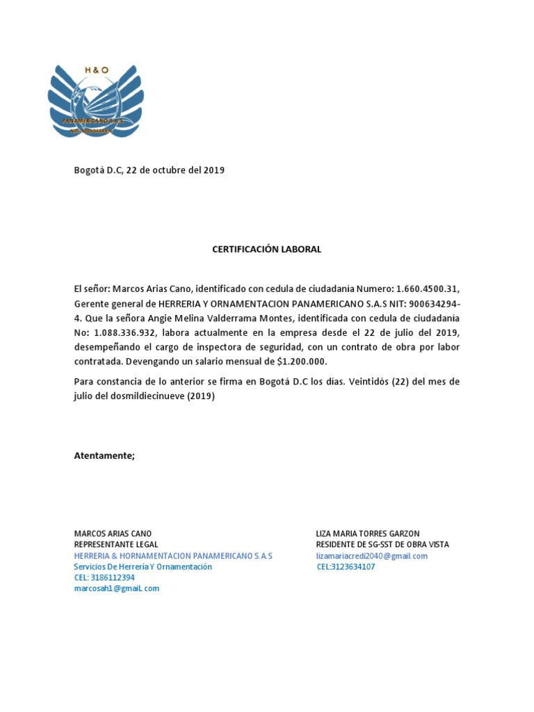 No: 1.088.336.932, labora actualmente en la empresa desde el 22 de julio del 2019,