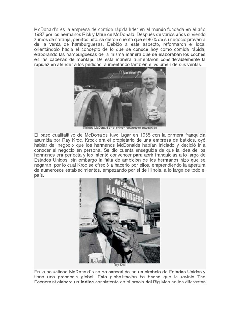 asumida por Ray Kroc. Krock era el propietario de una empresa de batidos, oyó