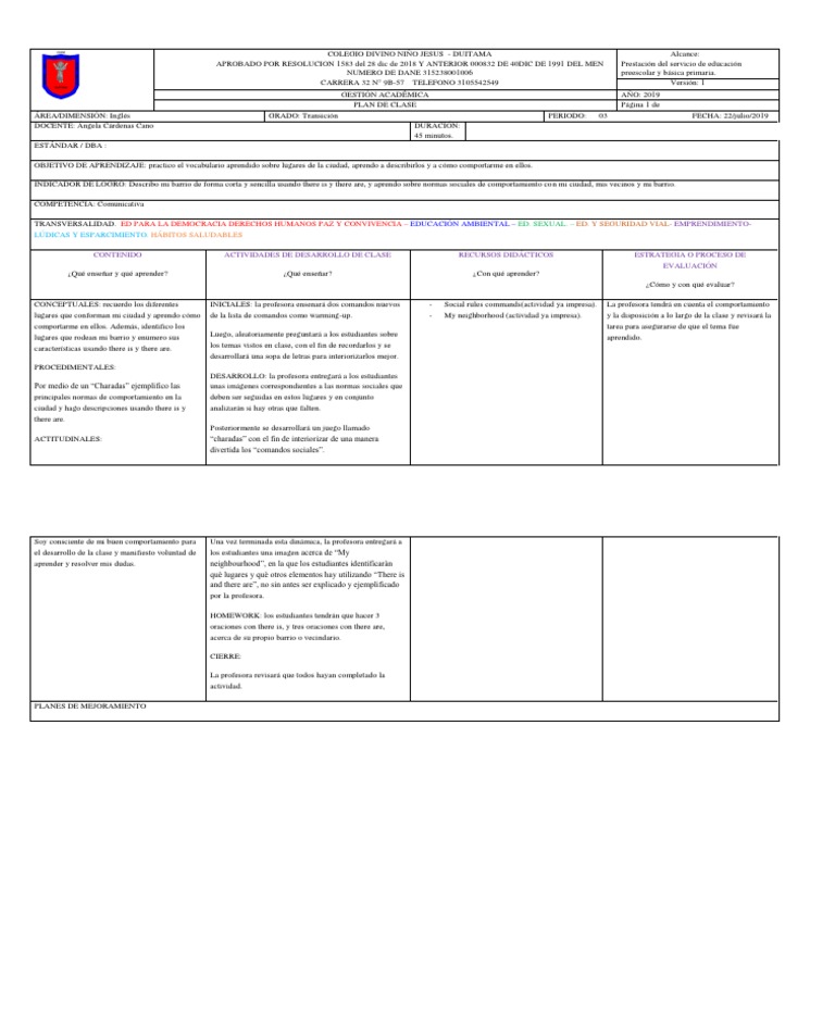 PLAN DE CLASE Página 1 de