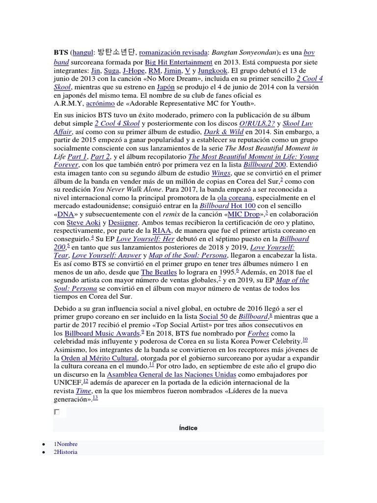 BTS (hangul: 방탄소년단, romanización revisada: Bangtan Sonyeondan) es una boy ?