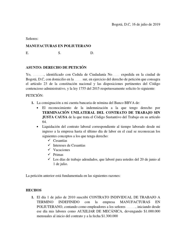 Bogotá, D.C, con domicilio en la …… sur, en ejercicio del derecho de petición que consagra