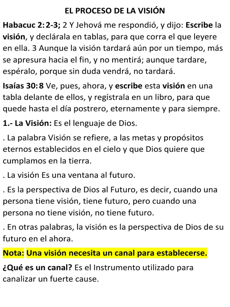 Nota: Una visión necesita un canal para establecerse.
