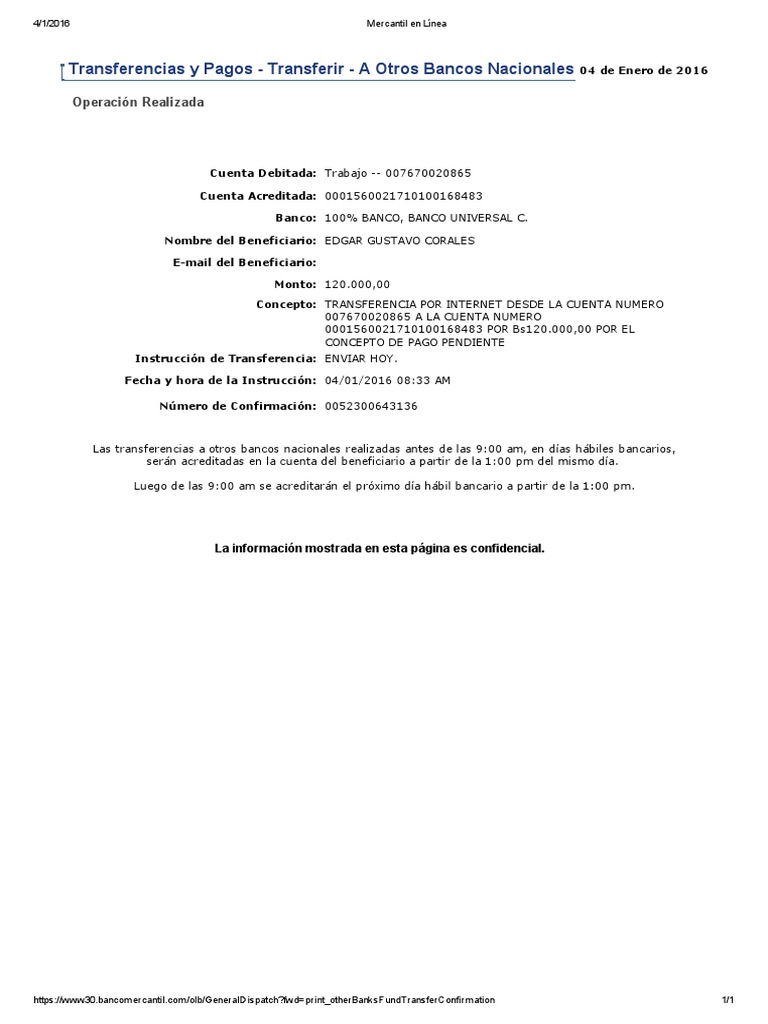 Transferencias y Pagos Transferir A Otros Bancos Nacionales 04 de Enero de 2016
