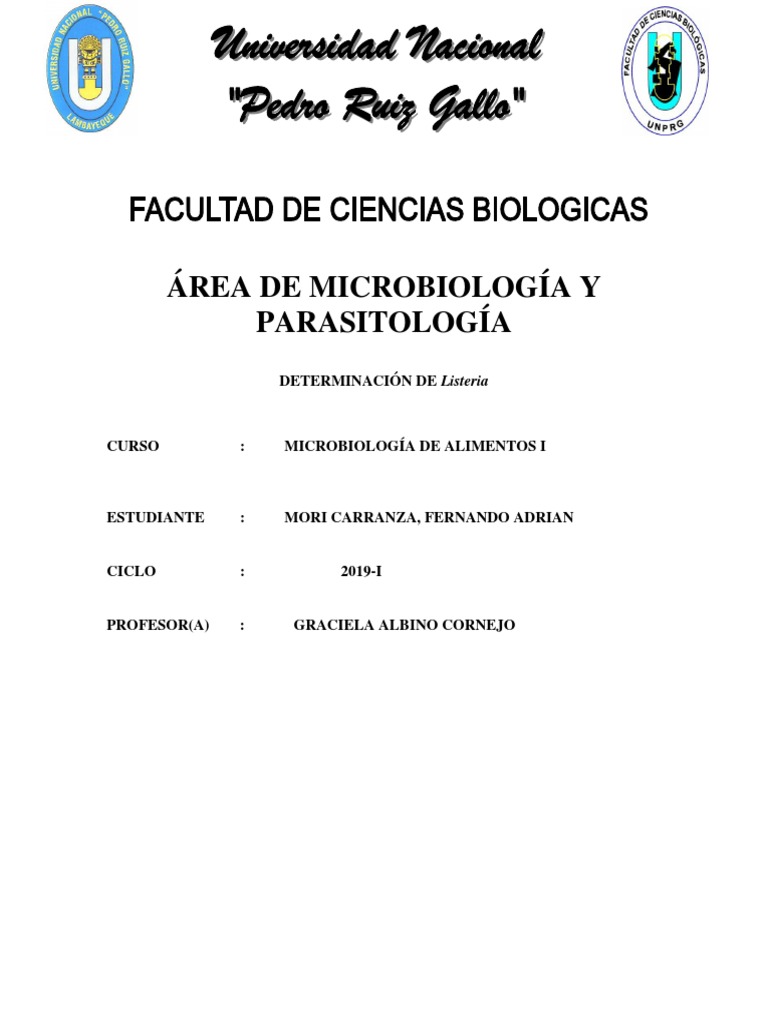 Pino G. F.A. (2017). Listeriosis de orígen alimentario.