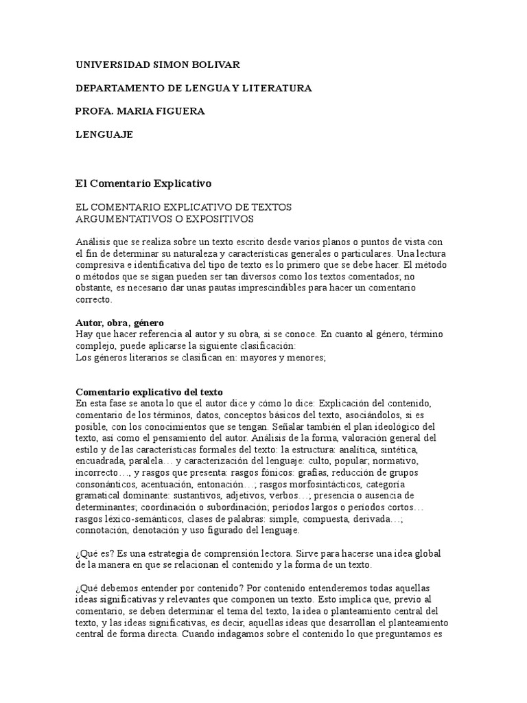 Comentario explicativo del texto