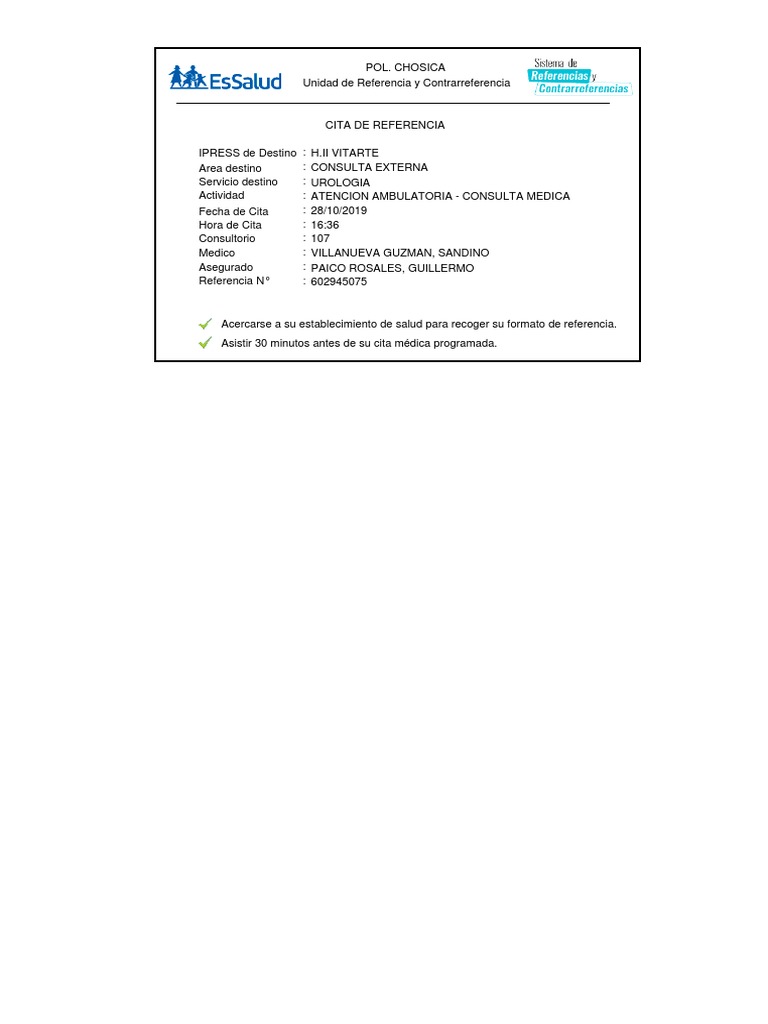 Acercarse a su establecimiento de salud para recoger su formato de referencia.