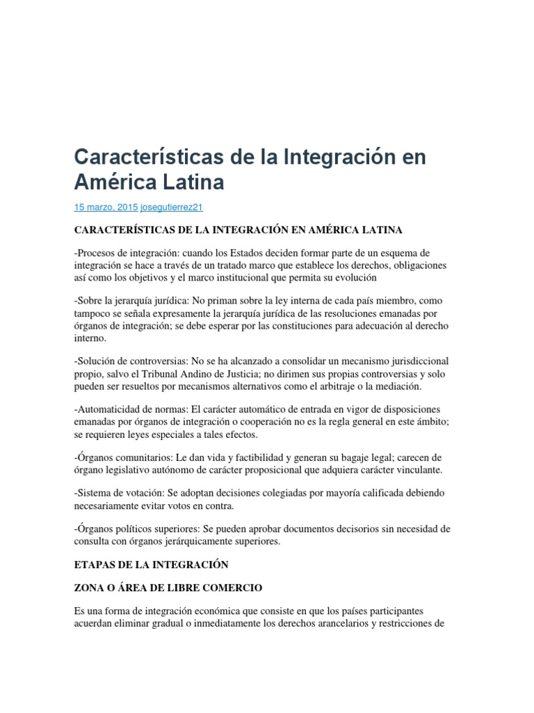 CARACTERÍSTICAS DE LA INTEGRACIÓN EN AMÉRICA LATINA