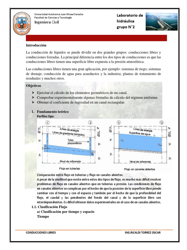conducciones libres tienen una superficie libre expuesta a la presión atmosférica.