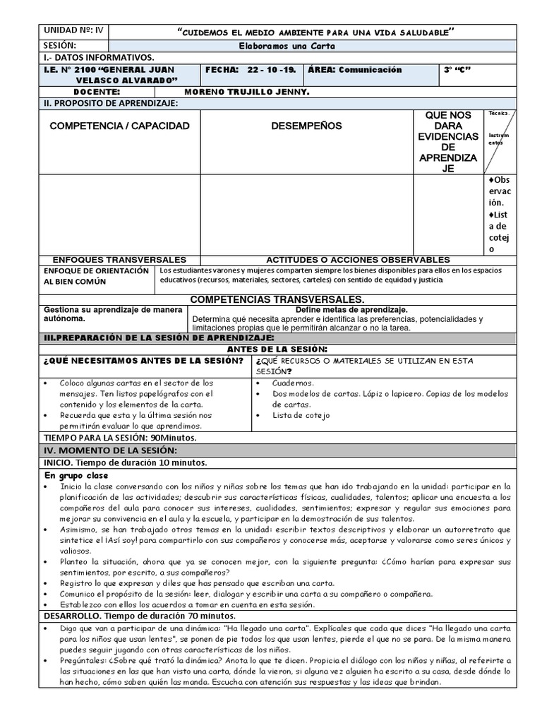 [Link]ÓN DE LA SESIÓN DE APRENDIZAJE: