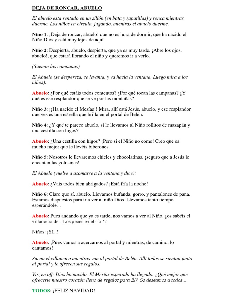 Niño 1: ¡Deja de roncar, abuelo! que no es hora de dormir, que ha nacido el
