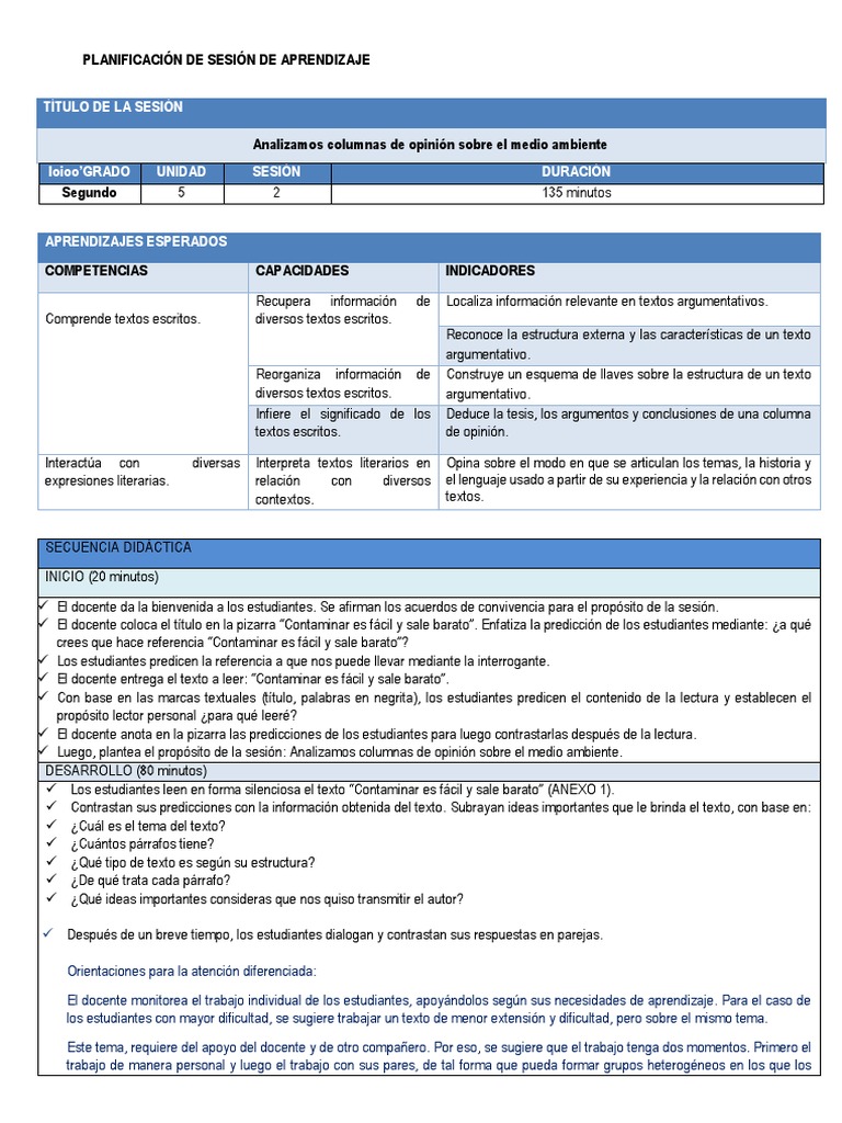 PLANIFICACIÓN DE SESIÓN DE APRENDIZAJE