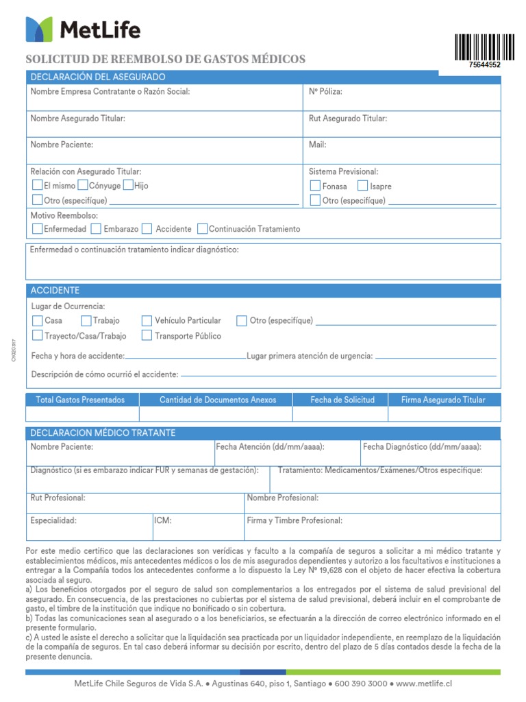 1. Todos los gastos deben ser reembolsados primero por su Isapre, Fonasa, Bienestar u otras coberturas de salud que tuviera