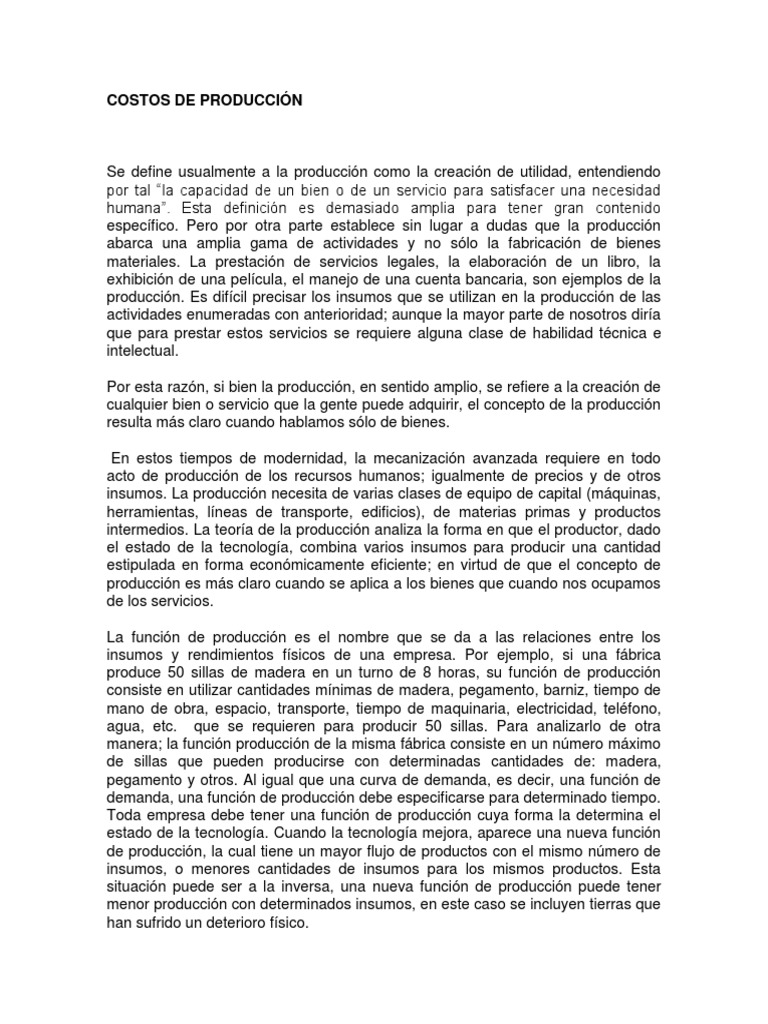 mano de obra y otros costos variables), forman los costos totales de producción de