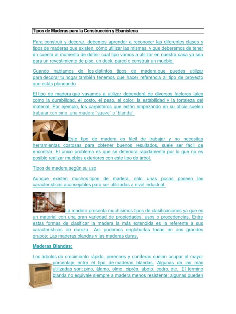 tipos de maderas que existen, cómo utilizar las mismas, y que deberemos de tener