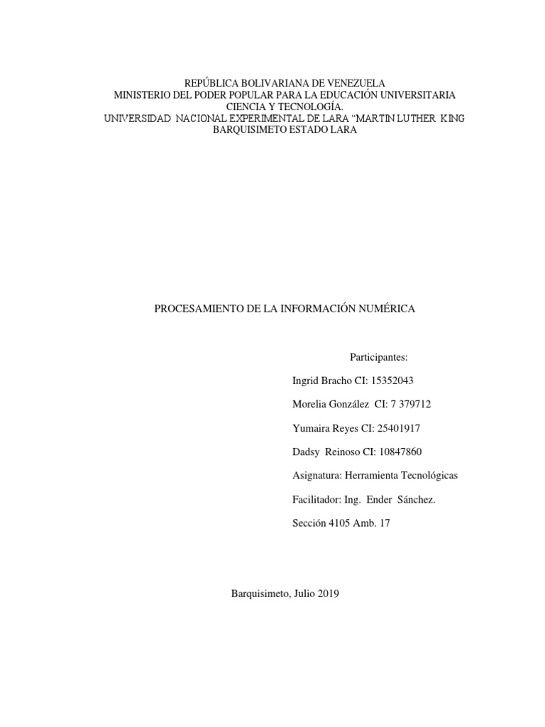 Procesamiento de la Información Numérica